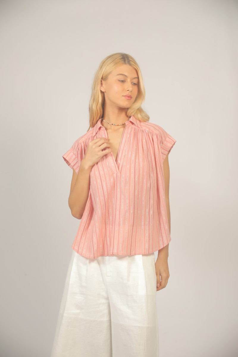 Quick view TOP S26111047 BLUE €59.00 Add to cart Availability: 2 In Stock BLOUSE FLUIDE RAYURES ET LUREX 80%VISCOSE 20%METAL