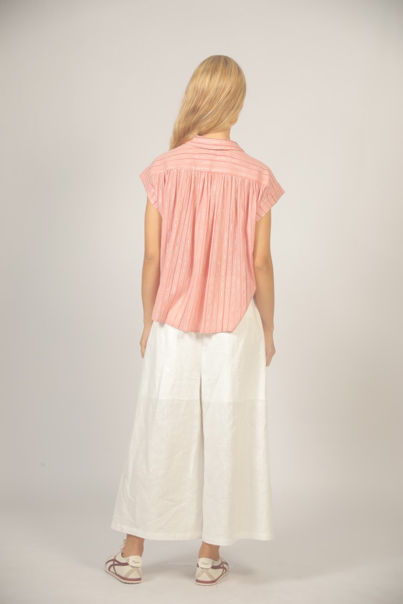 Quick view TOP S26111047 WHITE €59.00 Add to cart Availability: 1 In Stock BLOUSE FLUIDE RAYURES ET LUREX 80%VISCOSE 20%METAL