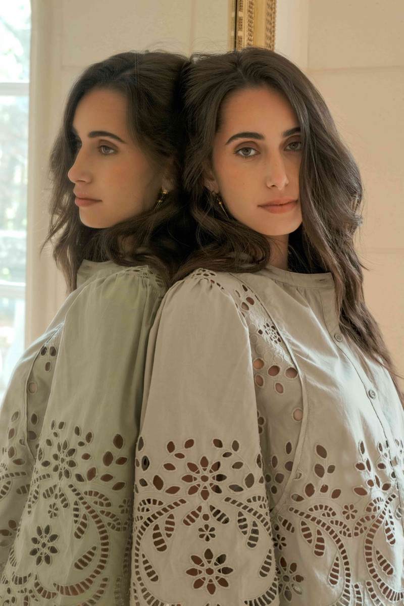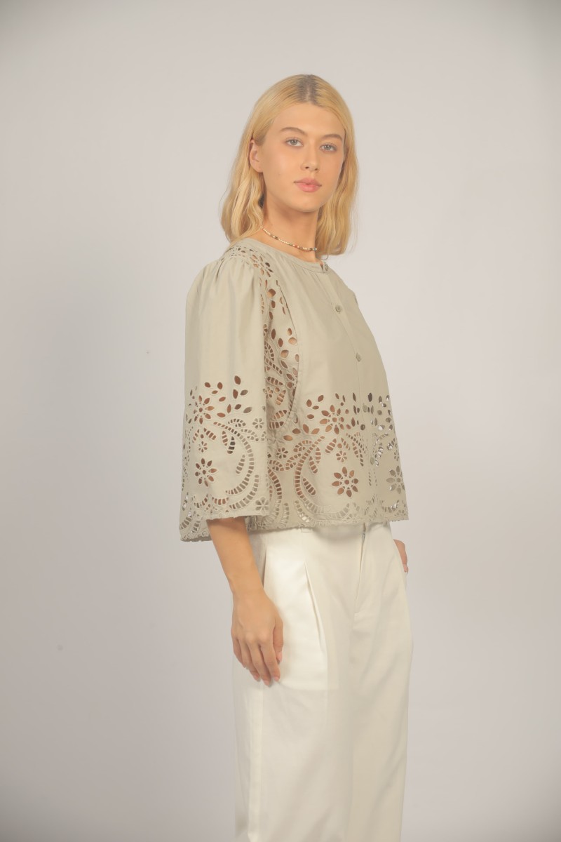TOP BRODERIE ANGLAISE AVEC MANCHES 3/4 100% COTON