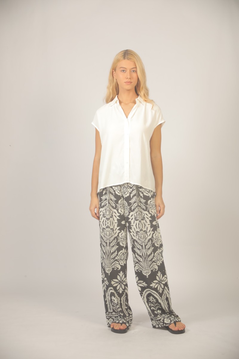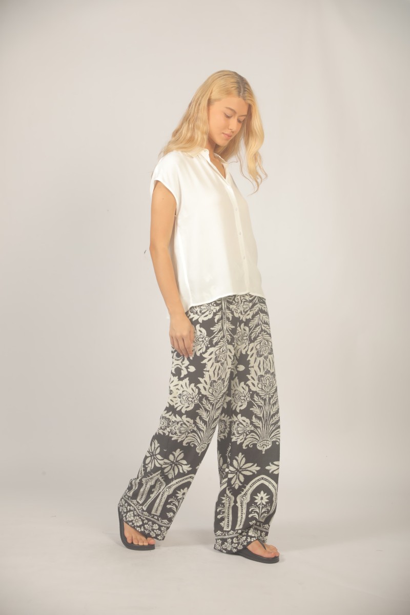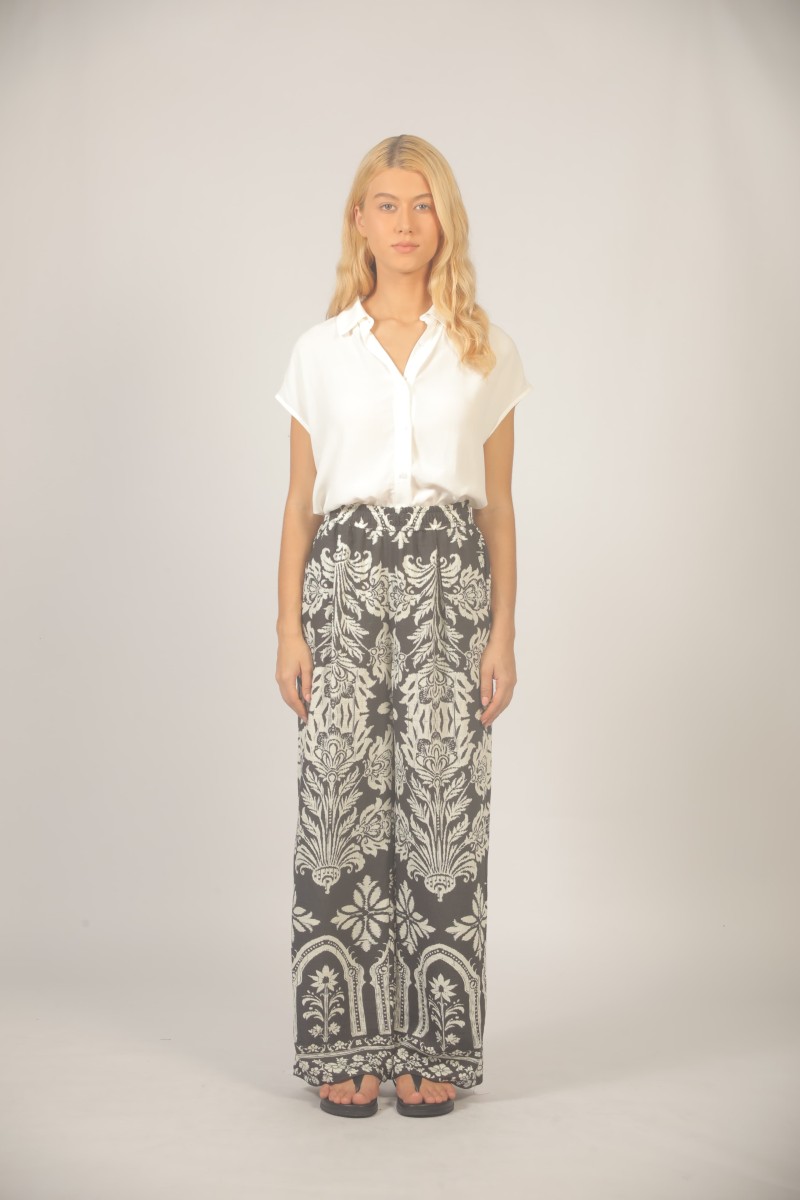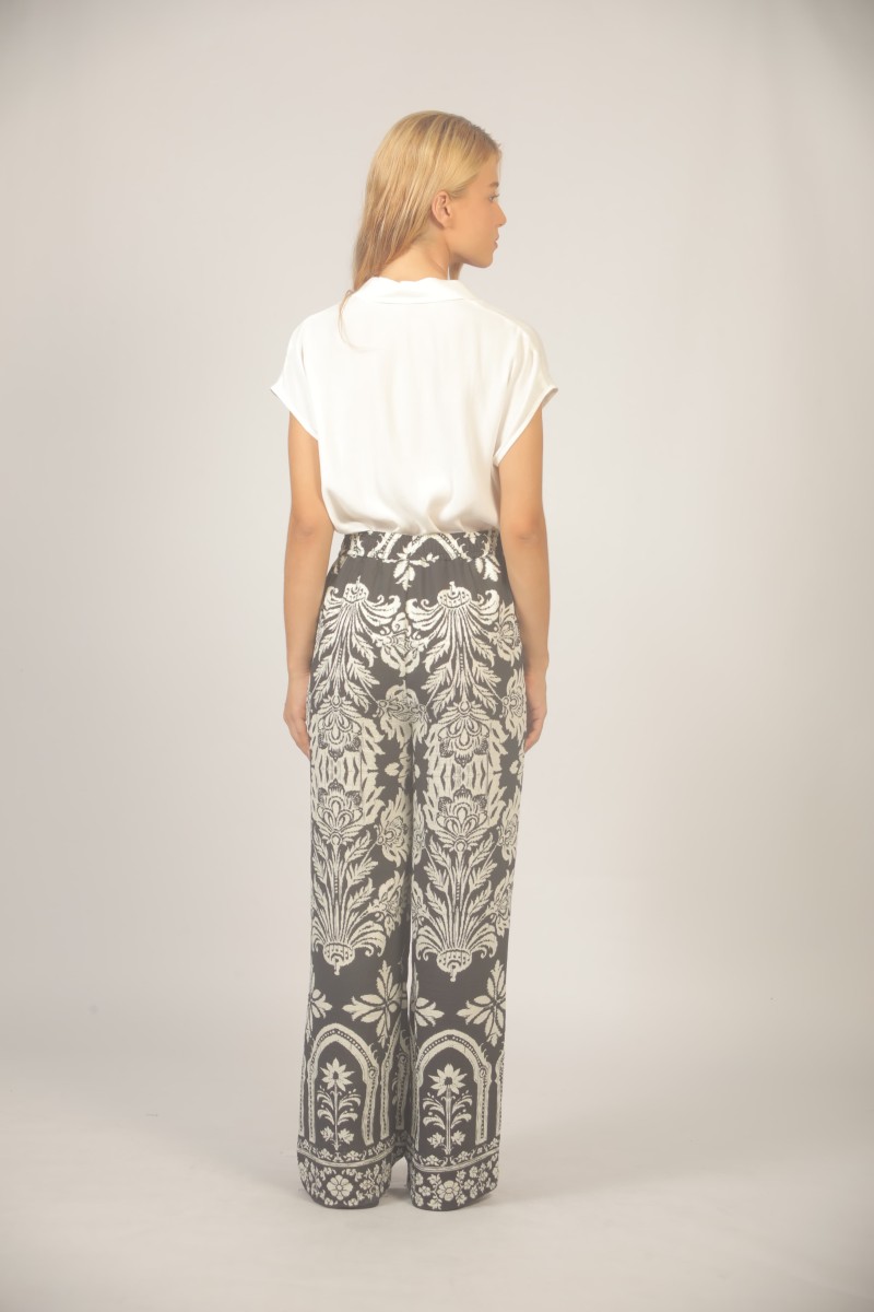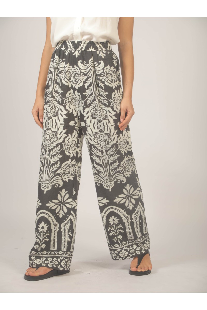 PANTALON IMPRIMÉ DROIT AVEC TAILLE ÉLASTIQUE 70% COTON 15%POLYAMIDE 15%LIN
