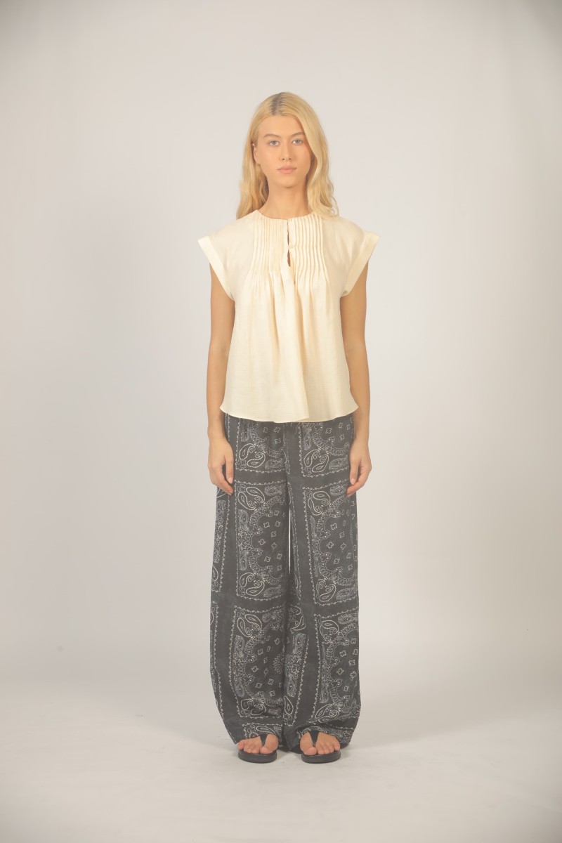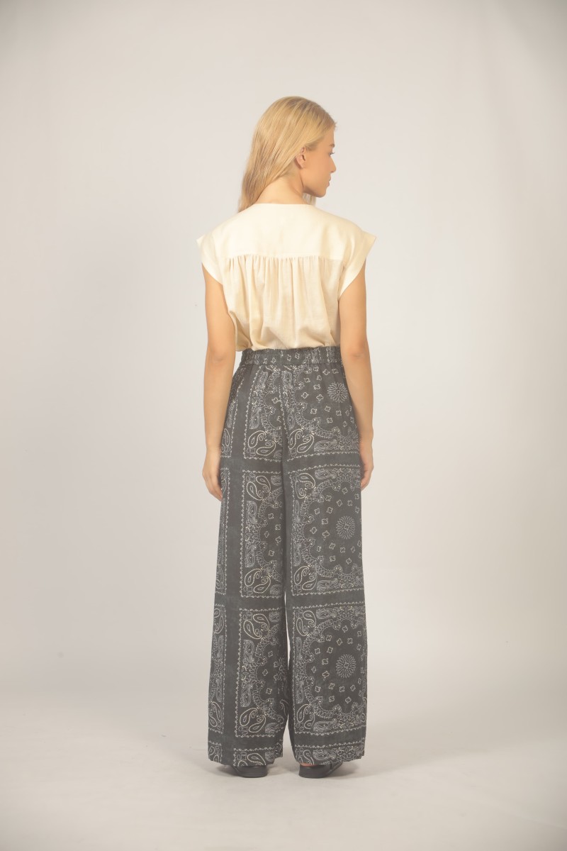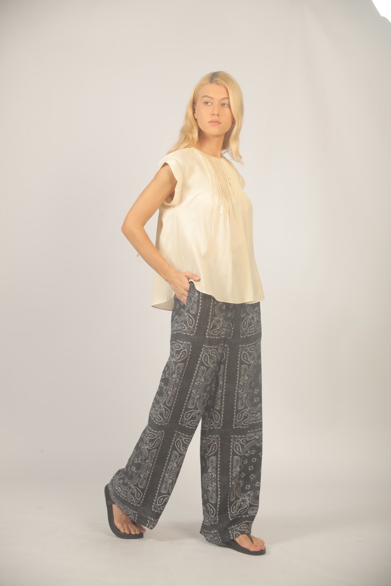 PANTALON FLUIDE IMPRIMÉ AVEC TAILLE ELASTIQUE 88%VISCOSE 12%POLYAMIDE