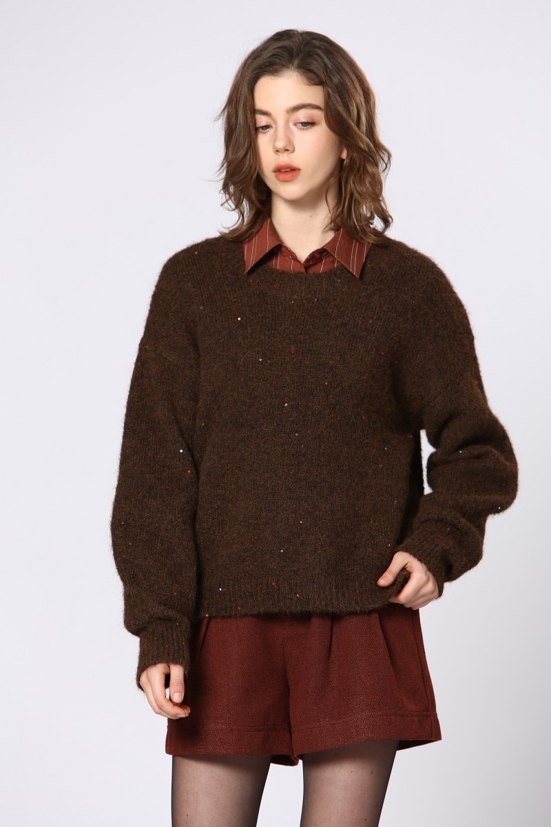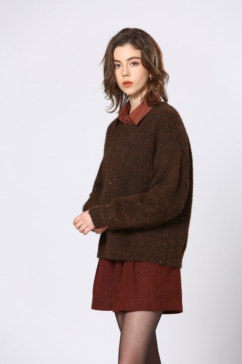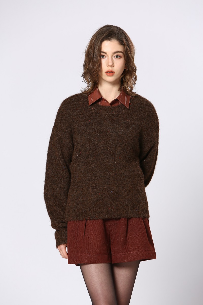 Pull seeusoon avec paillettes col rond et manches longues en 8%laine 13%acrylique 49%rayon 18%polyamide 11 %terylene 1%élasthanne