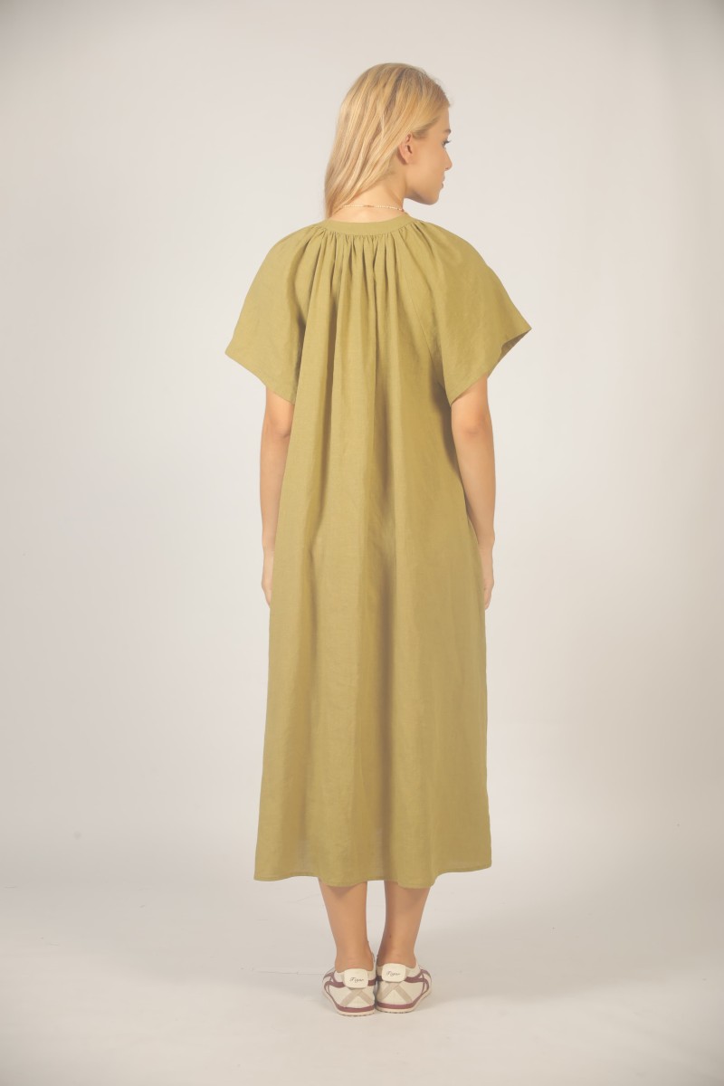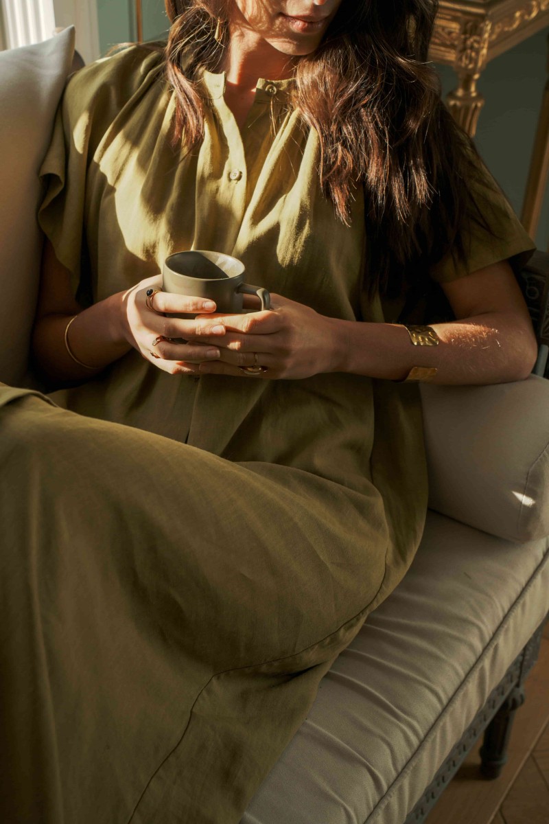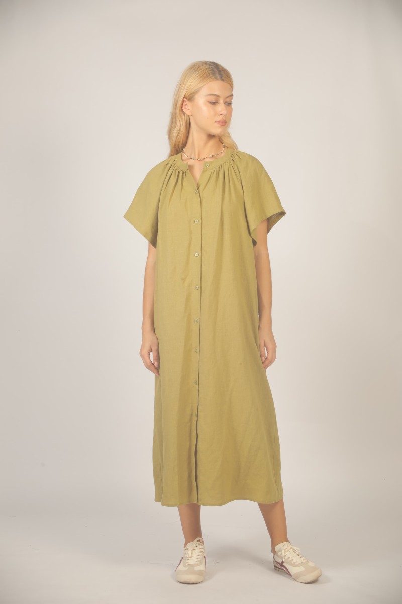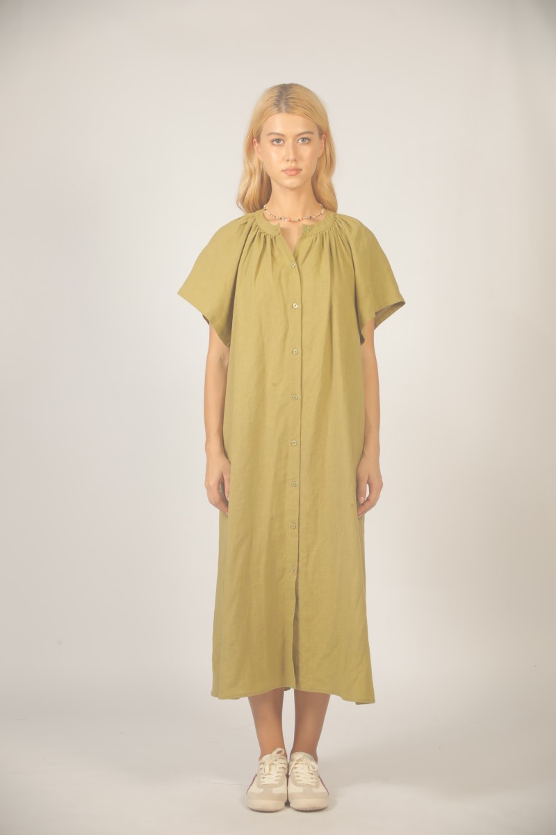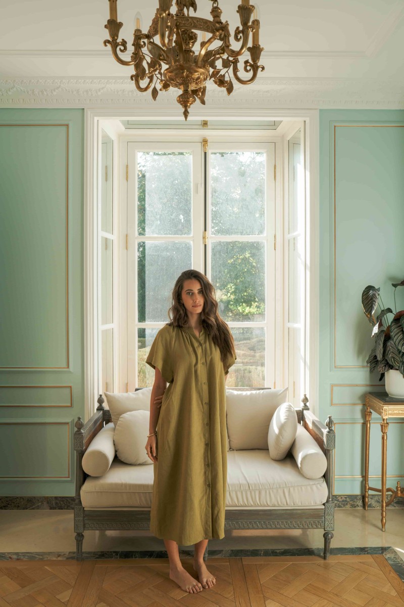 ROBE LONGUE DROITE BOUTONNÉE DEVANT 50%LIN 50%TENCEL