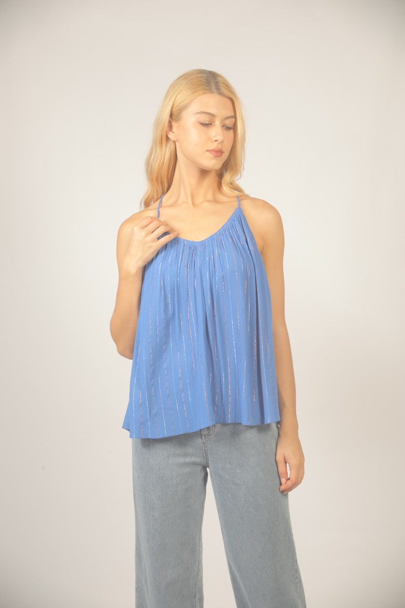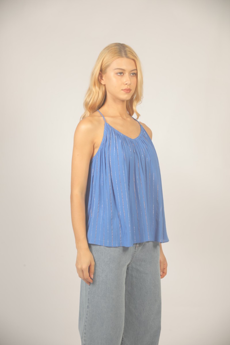 Aperçu rapide TOP S26111047 BLUE 59,00 € Ajouter au panier Availability: 2 In Stock BLOUSE FLUIDE RAYURES ET LUREX 80%VISCOSE 20%METAL