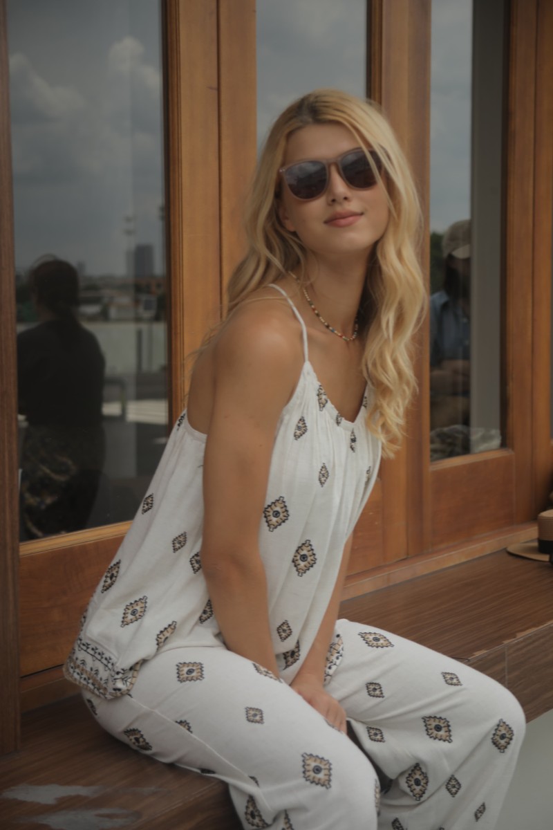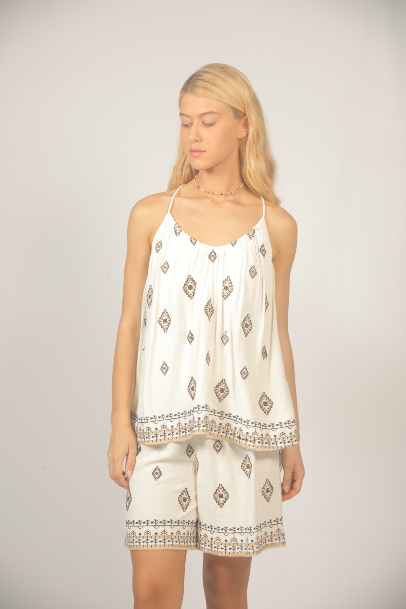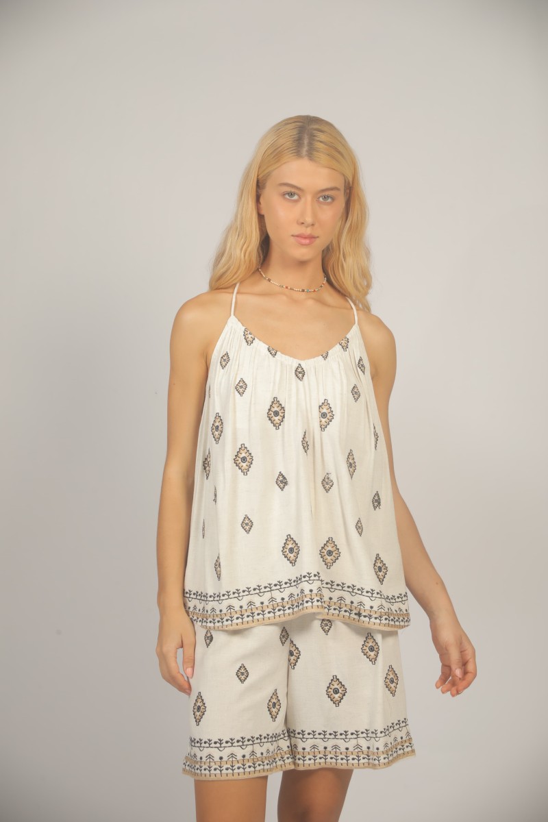 TOP BRETELLES EN BRODERIE FORME ÉVASÉE 20%LIN 80%VISCOSE