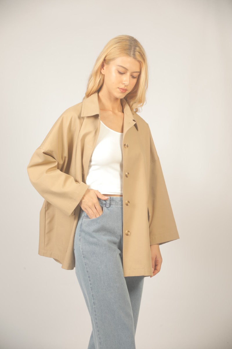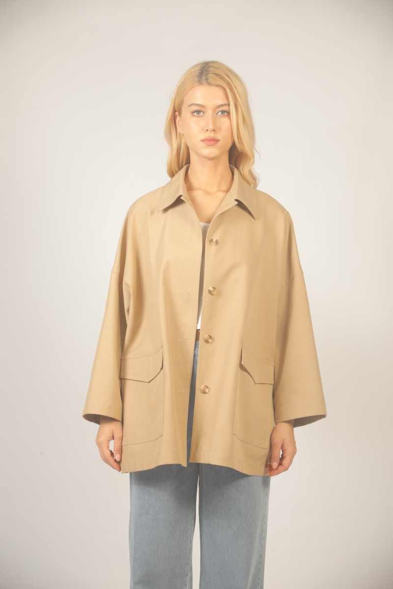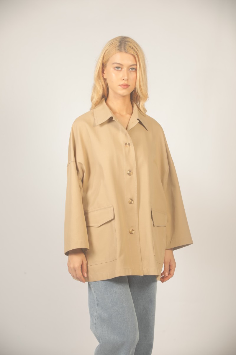 TRENCH COURT FEMME 100% COTON,DEUX POCHES,50%COTON,50%TERYLENE
