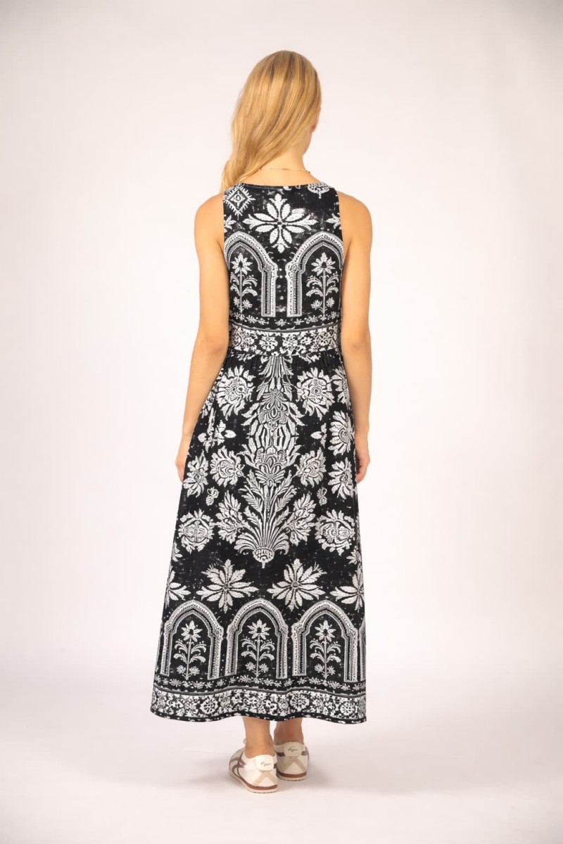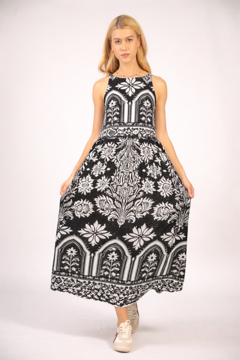 ROBE LONGUE IMPRIMÉE SANS MANCHES 77%VISCOSE 13%POLYAMIDE 10%LIN